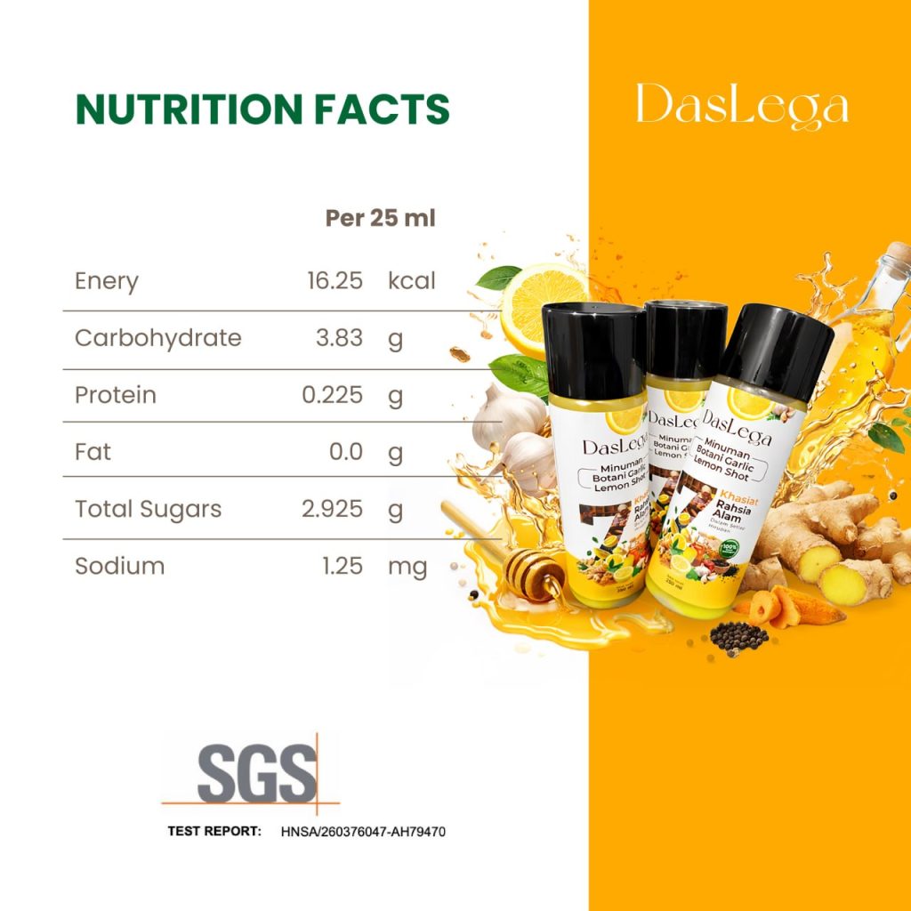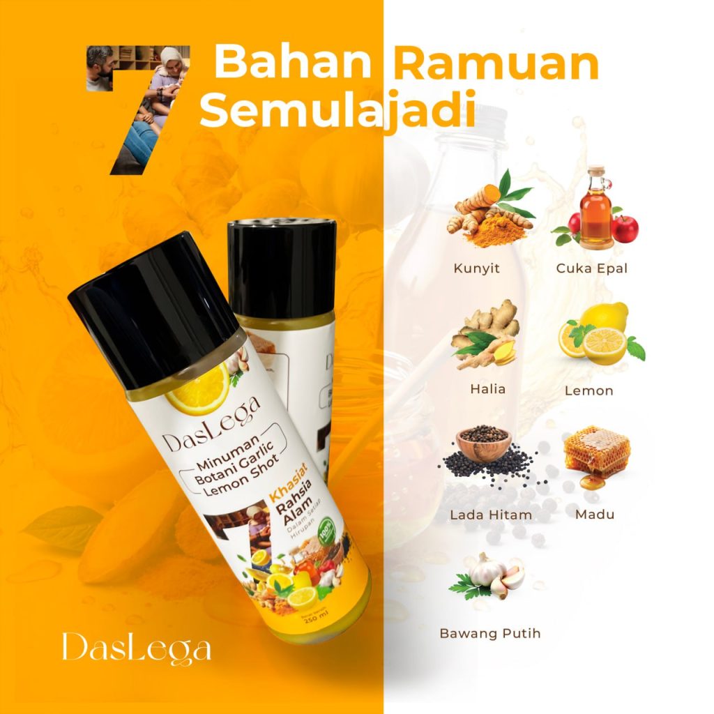 DASLEGA Detox Booster ialah minuman herba gabungan kunyit, halia, bawang putih, madu, apple cider, lada hitam dan lemon. Ia diformulasi khas untuk membantu kesihatan dalaman, meningkatkan tenaga, dan menyokong fungsi detoks badan